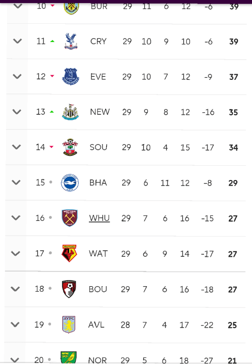 The premiership is back ,with 9 games left to play for most teams, Liverpool only need 6 more points to clinch the title . Bournemouth,Aston villa and Norwich are walking on thin ice ,the trio is facing relegation . Watford and West Ham United are on the edge of the drop zone only separated by goal difference with the team on the red line Bournemouth, Brighton Hove Albion are only 2 points away from safety