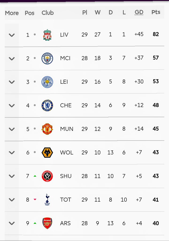 Sheffield United eyeing European football kick off the beginning of the remaining fixtures with an away trip to struggling Aston Villa,Sheffield United season has been one of the best stories of the campaign so far and their goal keeper Henderson has been key to their success , the shot stopper has good 10 clean sheets and that has been the second highest performance of a goalie so far this season behind the magnificent Liverpool Alison with 11 clean sheets ,a win for Sheffield United will destabilise the usual normal top 6 .two of London big giants ,rivalries Tottenham and Arsenal both with new coaches this season lie 8th and 9th respectively on the log table.